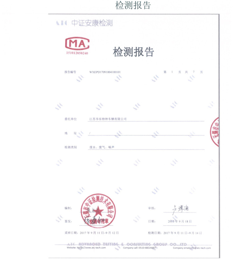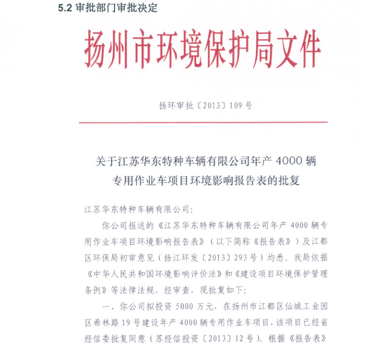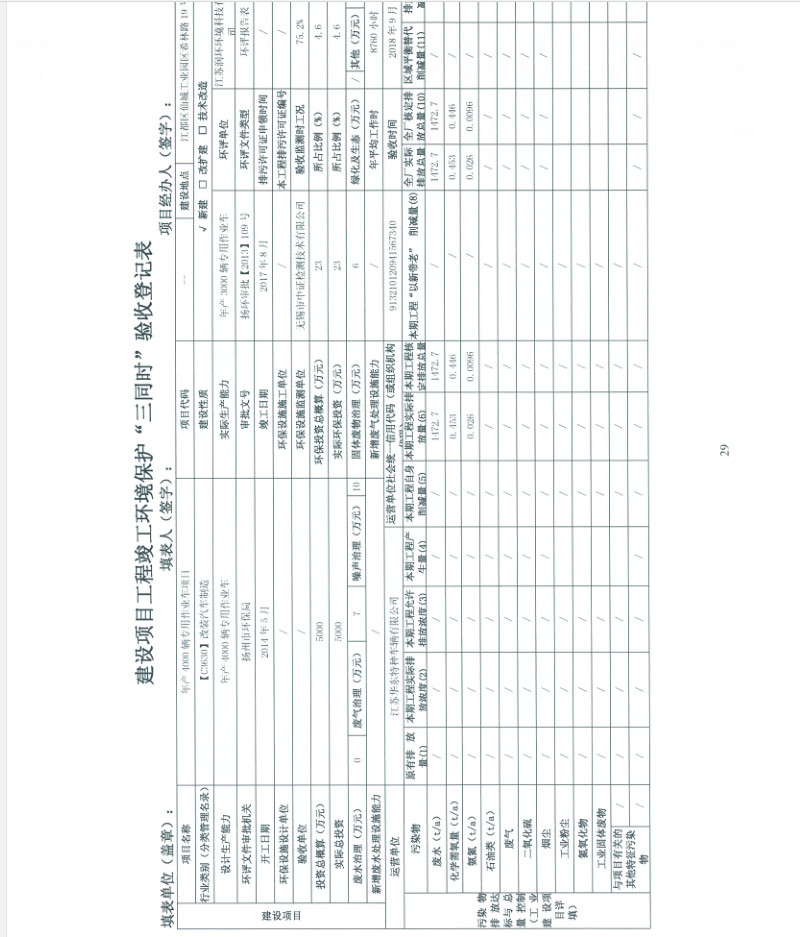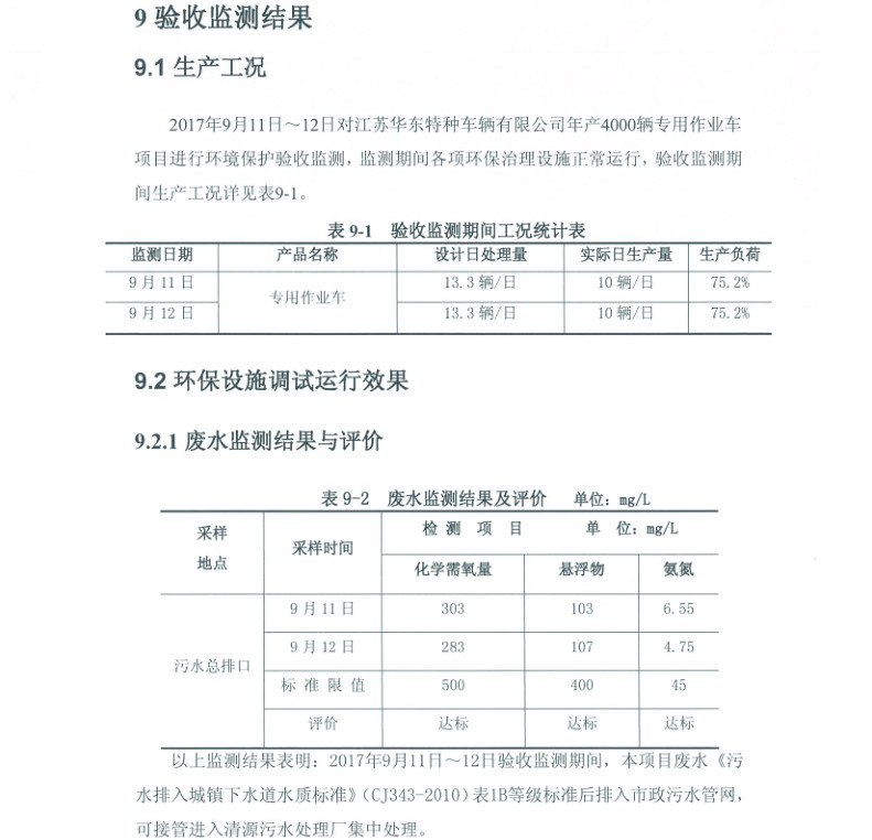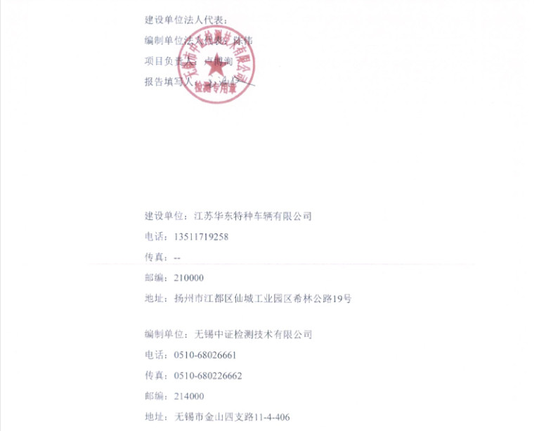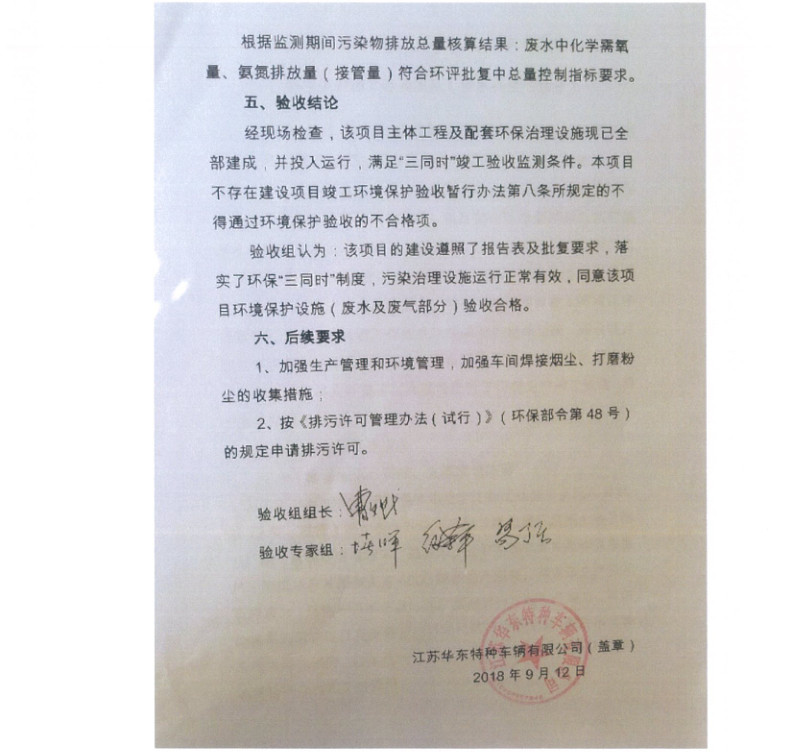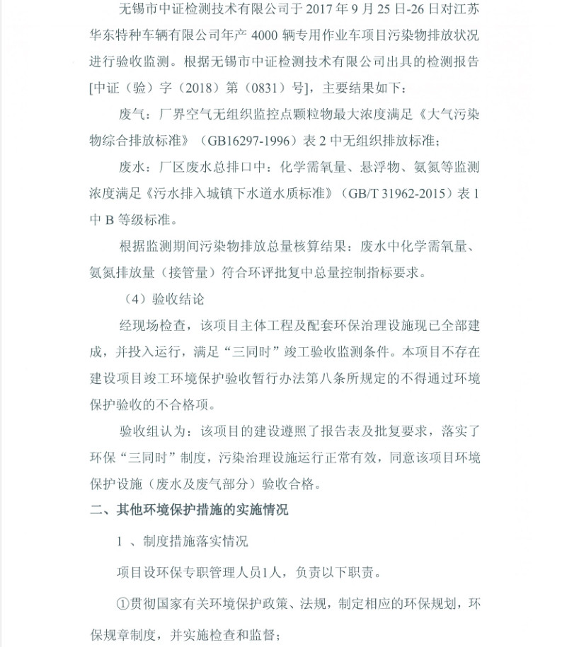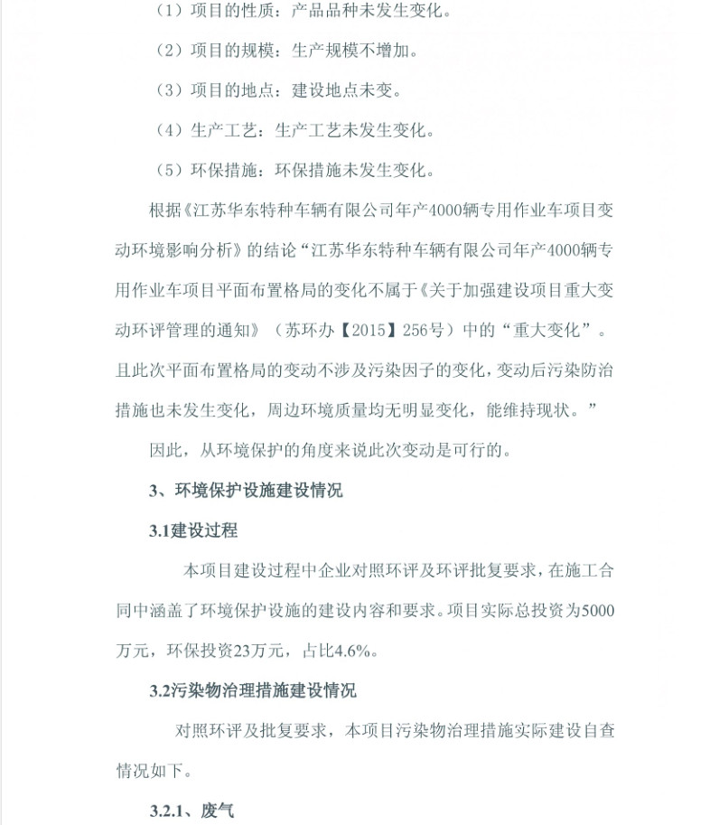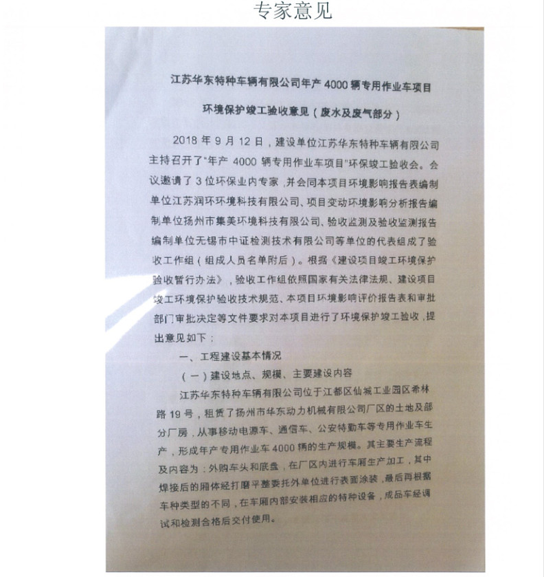 江蘇華東特種車輛有限公司年產(chǎn)4000輛專用作業(yè)車項目竣工環(huán)境保護驗收報告